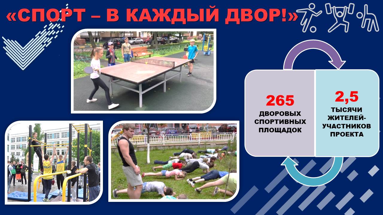 Губернатором поставлена задача благоустраивать ежегодно как минимум 10% дворовых территорий. За три прошедших года комплексно благоустроили 235 дворовых территорий –это треть всех дворов, в том числе в прошлом году – 69 дворов, заасфальтировали более 73 тыс. м² тротуаров, проездов и внутридворовых дорог. Установили 56 детских и 58 спортивных площадок.