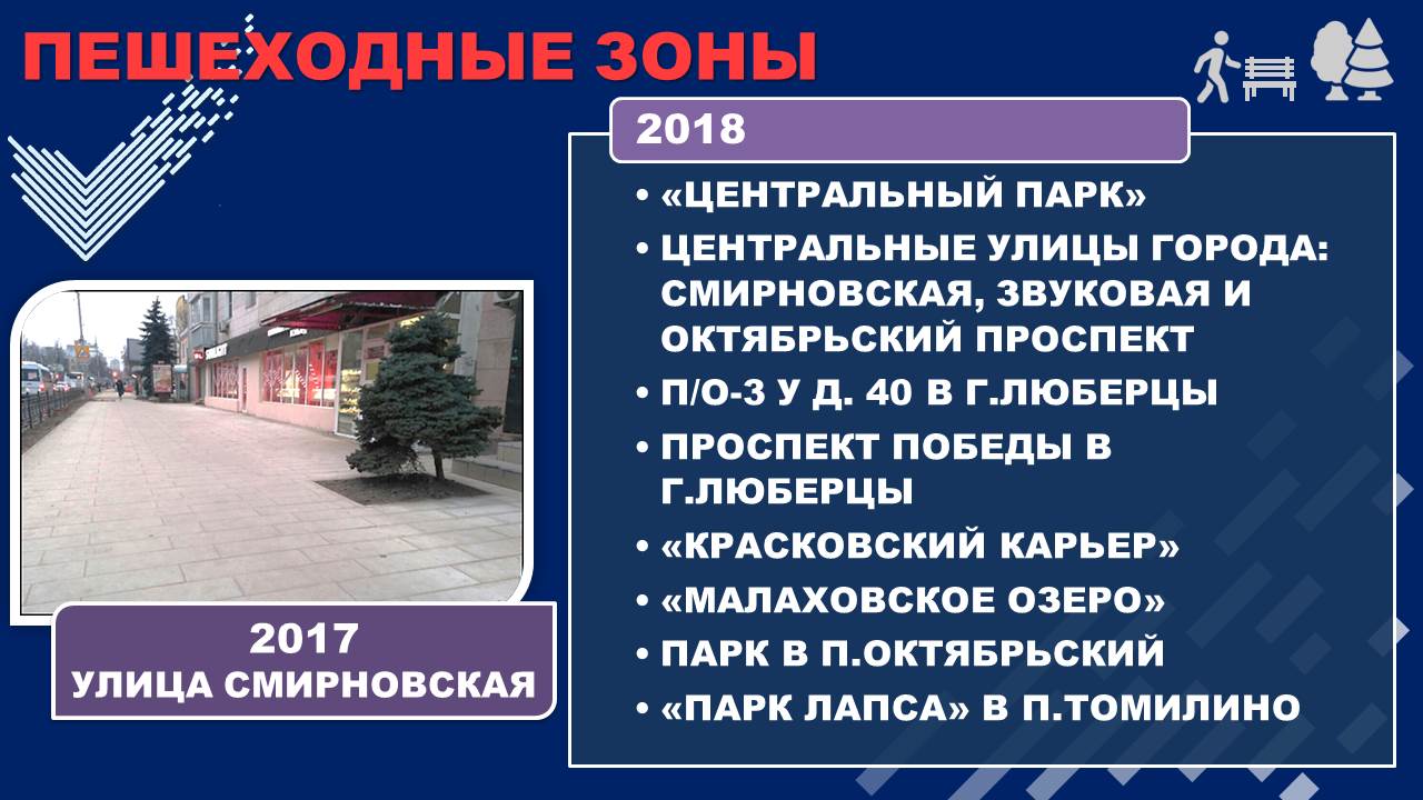 - первый этап реконструкции Центрального парка культуры и отдыха и обустройство пешеходной зоны на ул. Смирновской.