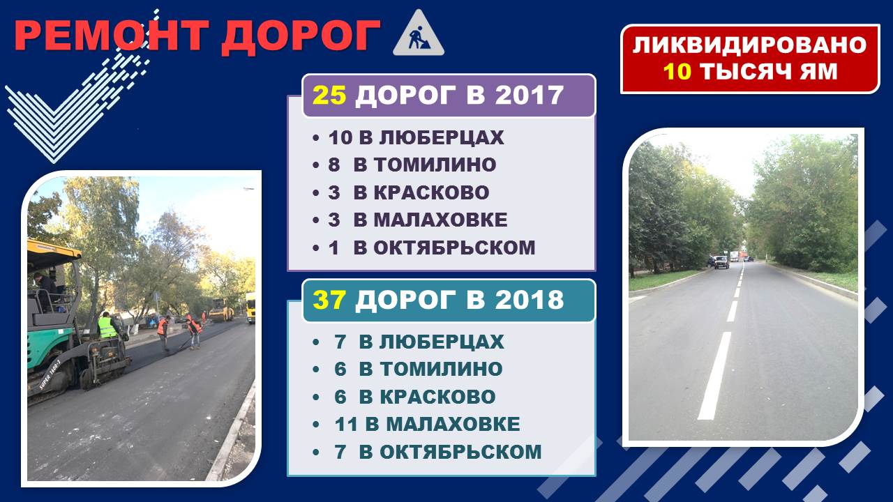 За прошедший год мы отремонтировали 25 дорог общей протяженностью 13,7 км,