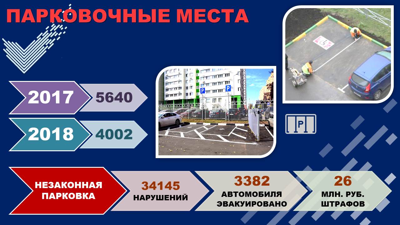 Обустроили 5640 парковочных мест, ликвидировали 10 тысяч ям.