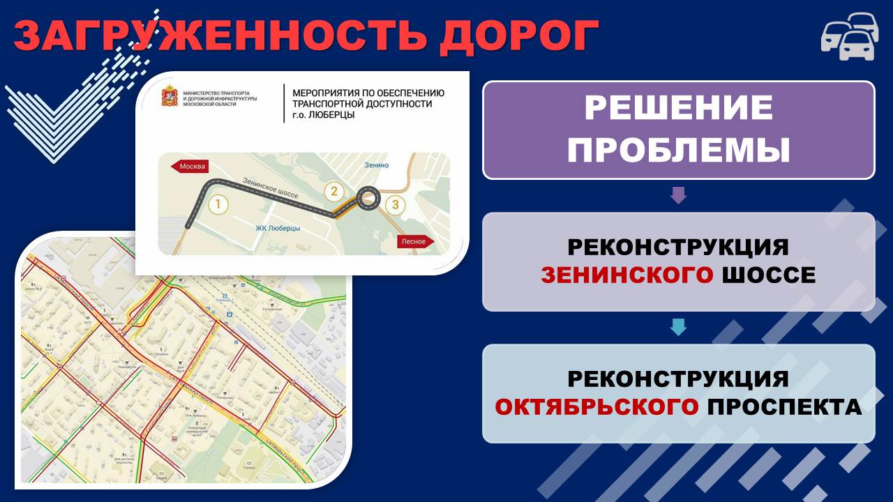Также крайне необходима реконструкция Зенинского шоссе, которая обеспечит транспортную доступность микрорайонов – ЖК «Люберцы-2015-2018».
