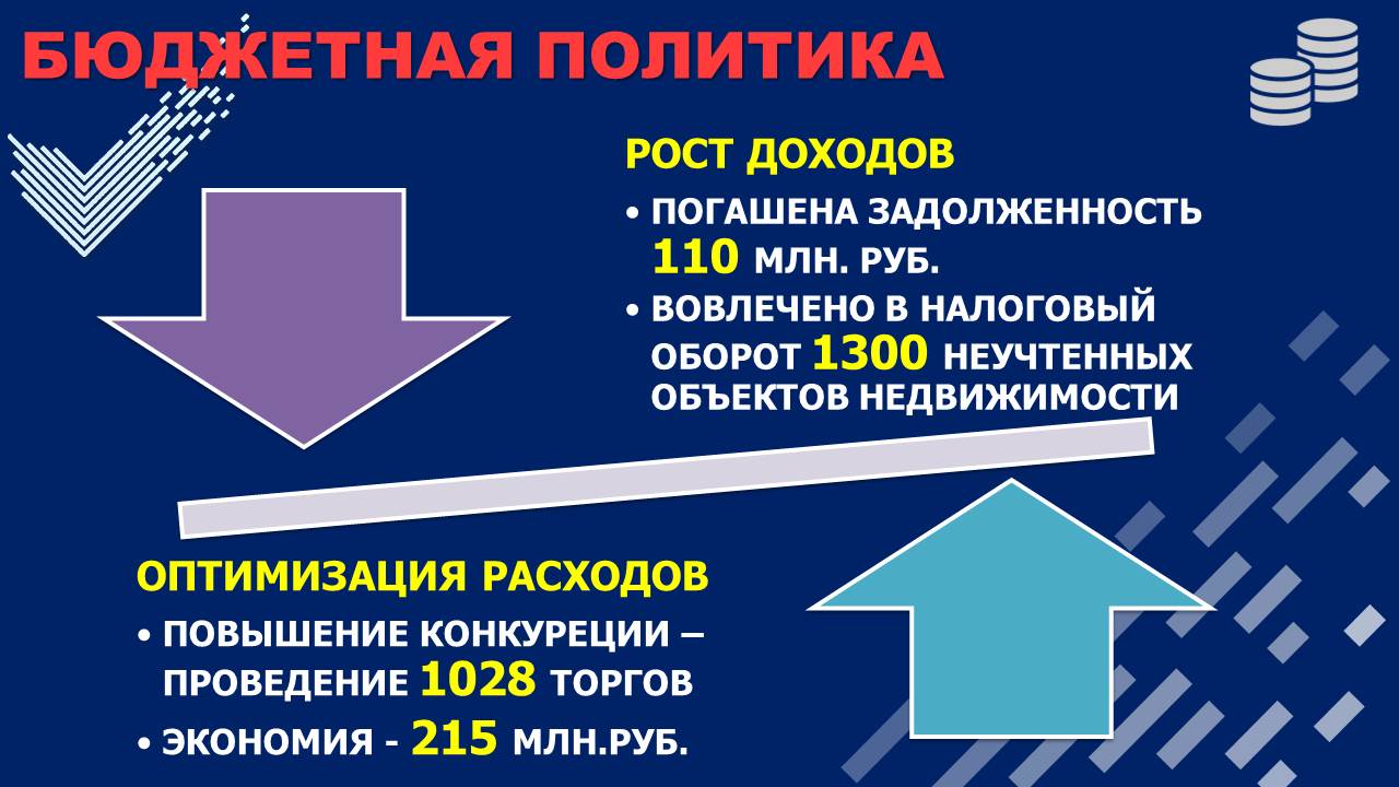 За прошлый год объем консолидированного бюджета составил 9,4 млрд. руб. – это 9 место в области среди муниципальных районов и городских округов. При этом мы обеспечили прирост доходной части консолидированного бюджета к уровню 2016 года в размере 17,6 %, в том числе благодаря активной работе по мобилизации доходов. В результате которой по итогам года было погашено более 110 млн. задолженности. Совместно с налоговой инспекцией продолжаем масштабную работу по вовлечению в налоговый оборот неучтенных объектов недвижимости: жилых, садовых, дачных домов и иных хозпостроек. За предыдущий год на кадастровый учет было поставлено более 1300 таких объектов. Возвращаясь к теме бюджета, хочу отметить, что важнейшим инструментом нашей бюджетной политики является повышение добросовестной конкуренции при проведении торгов.