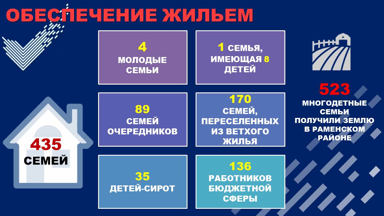 В прошедшем году обеспечены жильем 435 семей, в том числе: