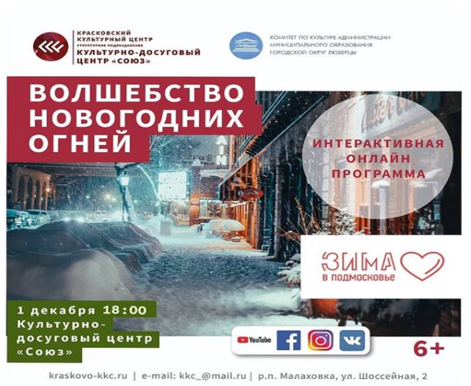 Во вторник, 1 декабря, КДЦ «Союз» приглашает люберчан на онлайн-мероприятия: