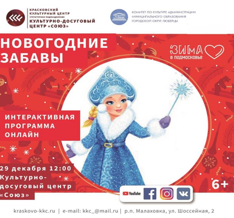 Культурно-досуговый центр «Союз» приглашает люберчан на онлайн-мероприятия 29 декабря