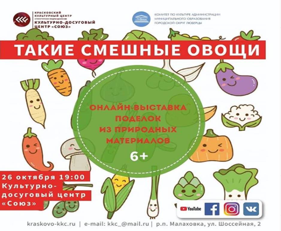 19:00 «Такие смешные овощи» - онлайн-выставка поделок из природных материалов.