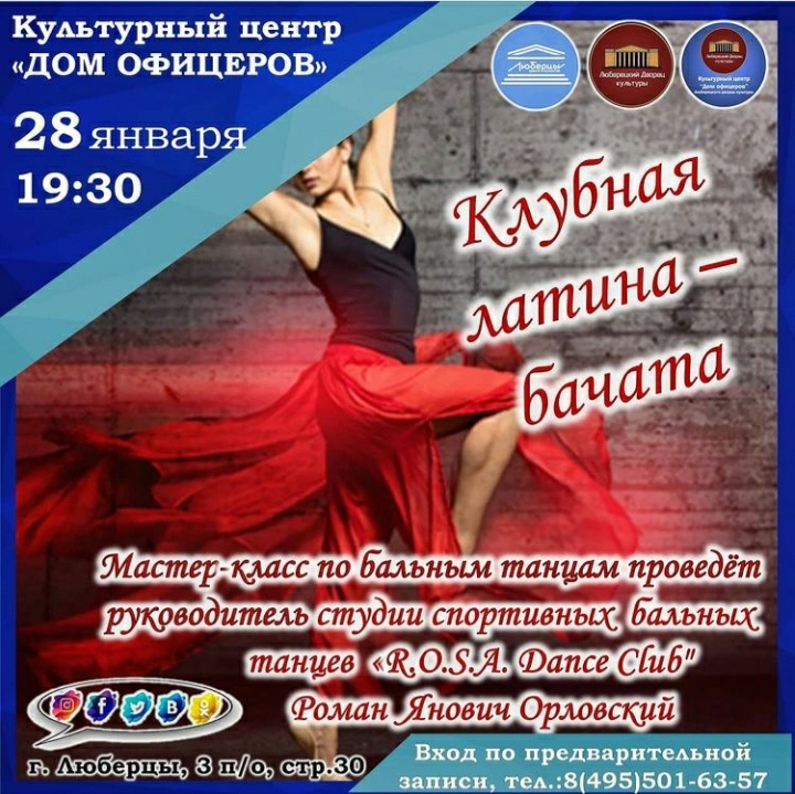 28 января культурный центр «Дом офицеров» приглашает люберчан на мастер-класс по бальным танцам «Клубная латина – Бачата».