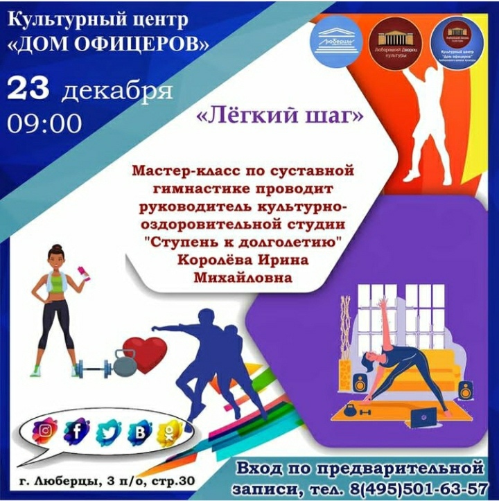 В среду, 23 декабря, культурный центр «Дом офицеров» приглашает люберчан на мастер-класс по суставной гимнастике «Легкий шаг».
