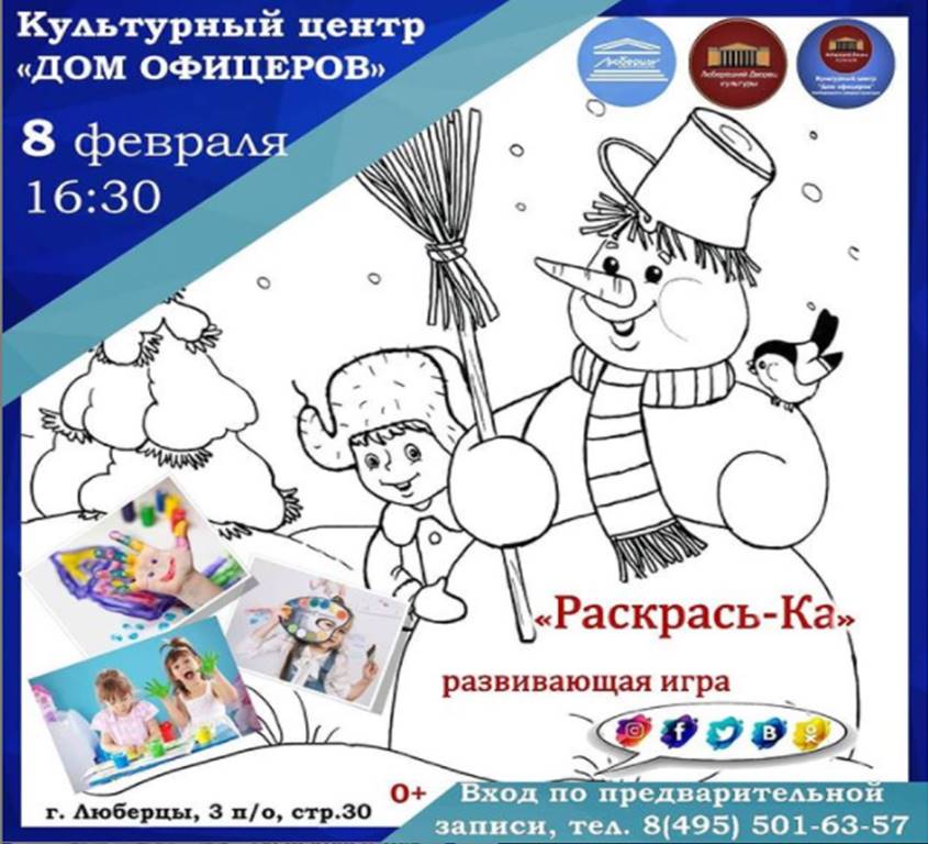 В понедельник, 8 февраля, культурный центр «Дом офицеров» приглашает юных люберчан присоединиться к развивающей игре «Раскрась-Ка».