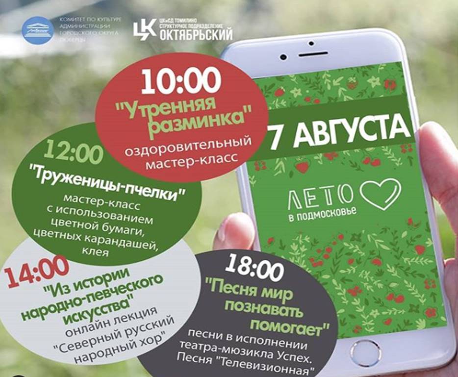 В пятницу, 7 августа, культурный центр Октябрьский приглашает люберчан на онлайн-мероприятия: