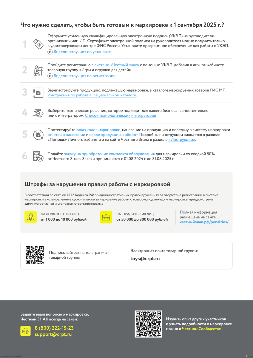 Министерство промышленности и торговли Российской Федерации информирует о том, что с 1 сентября 2025 г. начинается поэтапное введение маркировки средствами идентификации отдельных видов товаров для детей..