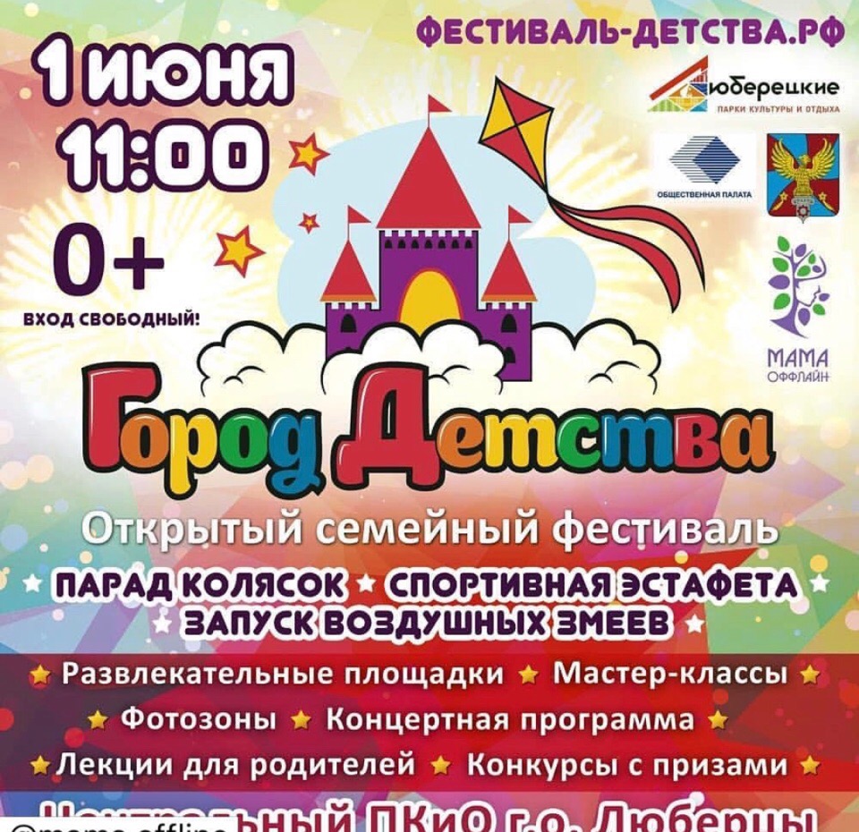 1 июня состоится открытый семейный фестиваль «Город детства!», посвященный Дню защиты детей в Центральном парке городского округа Люберцы.