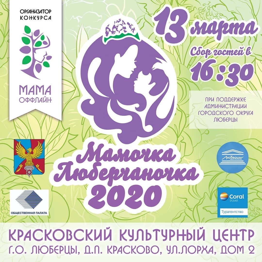 Мы рады сообщить Вам, что 13 марта, состоится главное мероприятие года от городского сообщества "МАМА-ОФФЛАЙН" - финал конкурса "Мамочка - Люберчаночка-2020"!