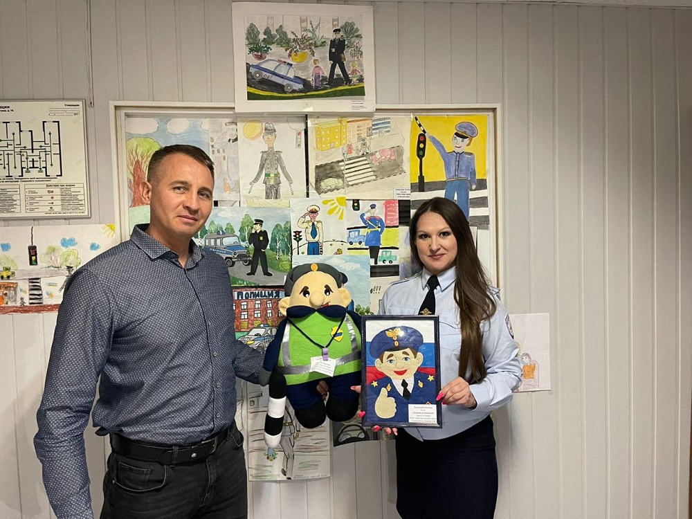 По итогам конкурса жюри выделило 3 работы: «Веселый гаишник» Власовой Анастасии, «Добрый полицейский» Балашкиной Полины и «Полицейский на службе» Дерябиной Глафиры.