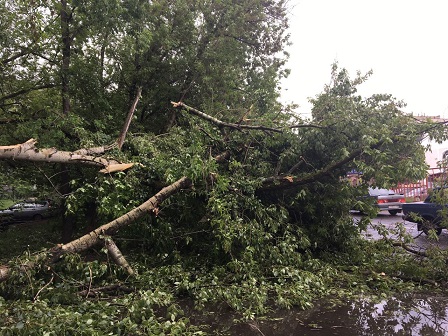 Он подчеркнул, что над ликвидацией последствий стихии сейчас работают 35 аварийно-восстановительных бригад РСО, МОЭСК, управляющих организаций, МЧС, Мособлпожспаса.