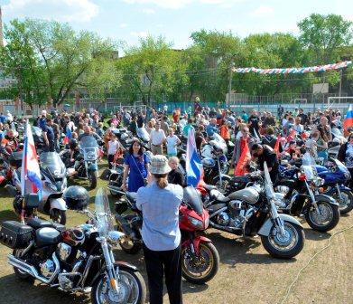 Представители мотоклубов Подмосковья традиционно приняли участие в праздничных мероприятиях в Малаховке, посвящённых Дню Победы. С рёвом моторов и под восторженные возгласы зрителей мотоколонна въехала на стадион «Труд». В мотопараде в этом году приняли участие почти полторы сотни машин. Проехав круг почёта по стадиону, мотоциклисты выстроили своих коней рядом со сценой.