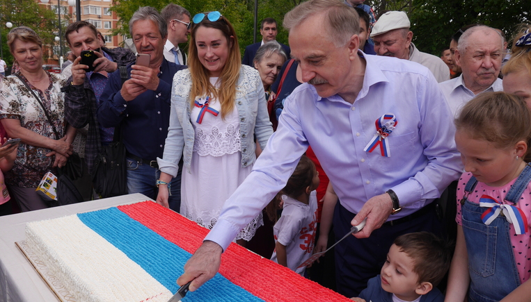 В Люберцах в День России испекли торт цветов российского флага. В Наташинском парке им угощали всех гостей, сообщил глава городского округа Люберцы Владимир Ружицкий.