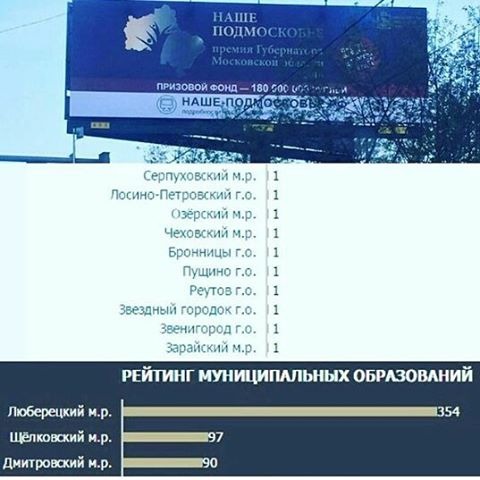 По количеству заявок на премию губернатора Московской области «Наше Подмосковье» лидируют Люберцы. Муниципалитет собрал более трети из 1,2 тысяч заявок, отправленных в оргкомитет конкурса в этом году. Тройку лидеров дополняют Щелковский и Дмитровский районы. Об этом сообщает информационное агентство «Россия сегодня» со ссылкой на телеканал «360».