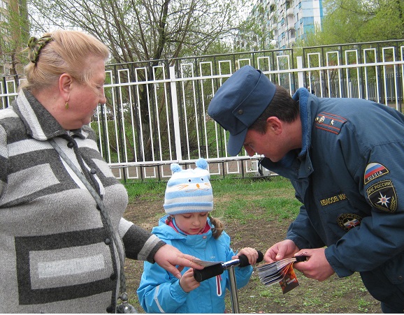 Майор Квасов вручил посетителям парка буклеты «Памятка населению при возникновении чрезвычайных ситуаций, при террористических актах и пожарах» и устно разъяснил, как важно соблюдать меры противопожарной безопасности не только в парке, но и в других местах: дома, на даче и в лесу.