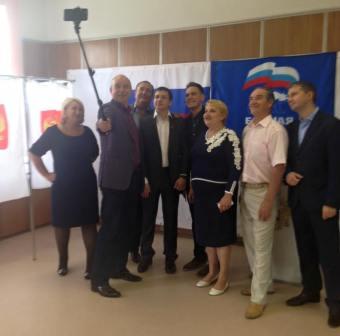Руководитель поселка в окружении местных депутатов-единороссов и их сторонников… Так запечатлели себя на снимке на народных праймериз кандидаты, которые претендуют на участие в выборах депутатов в Совет депутатов Томилино в сентябре.