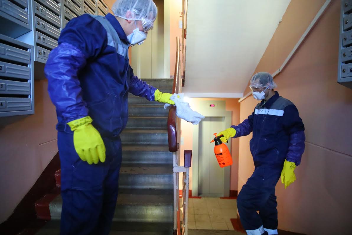 «Обрабатываются первые этажи подъездов: полы, дверные и оконные ручки, почтовые ящики, панели домофонов и кодовых замков, перила лестничных маршей, вентиляционные решетки; лифтовые кабины: напольные покрытия, панели управления лифтами, лифтовые вентиляционные решетки методом влажной протирки, большие поверхности (стены) методом орошения с использованием дезинфицирующих средств», - отметил Ружицкий.