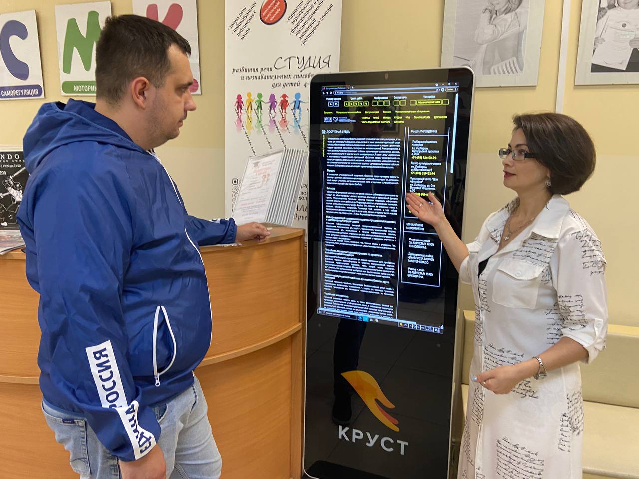 Вместе с заведующей КЦ «Дом офицеров» Анжелой Барсуковой проверили состояние пандусов и предупреждающих тактильных плиток, указательных табличек Брайля, кнопки вызова администратора при входе в здание.