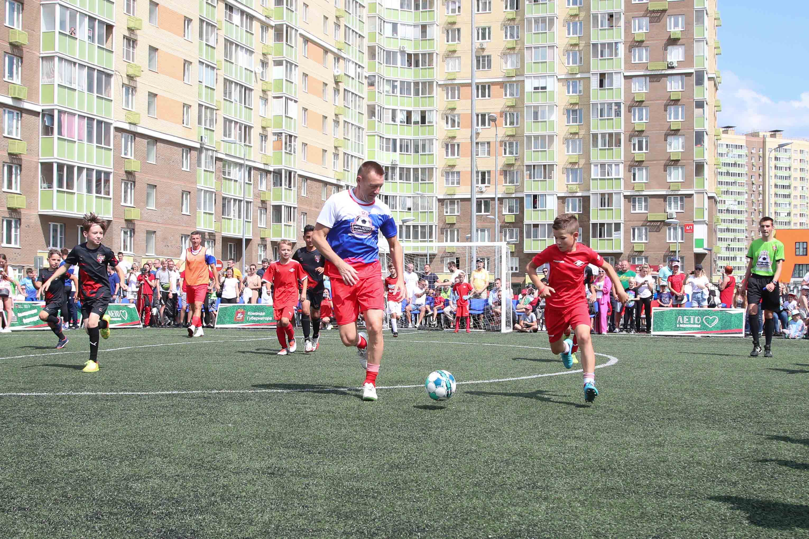 В городском округе Люберцы на стадионе Инженерно-технологического лицея звёзды отечественного футбола встретились с командой местных жителей. Встреча собрала более 1500 зрителей и стала уже седьмой по счёту игрой летней серии проекта «Выходи во двор», где прославленные футболисты проводят матчи с жителями Подмосковья.