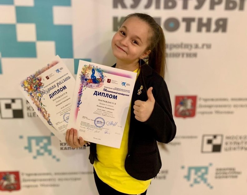 Ученица детской музыкальной школы №2 Екатерина Конорева стала лауреатом I степени сразу двух музыкальных конкурсов: открытого конкурса эстрадной песни «Звёздная россыпь» и открытого конкурса вокально-хорового искусства «Музыкальный калейдоскоп».