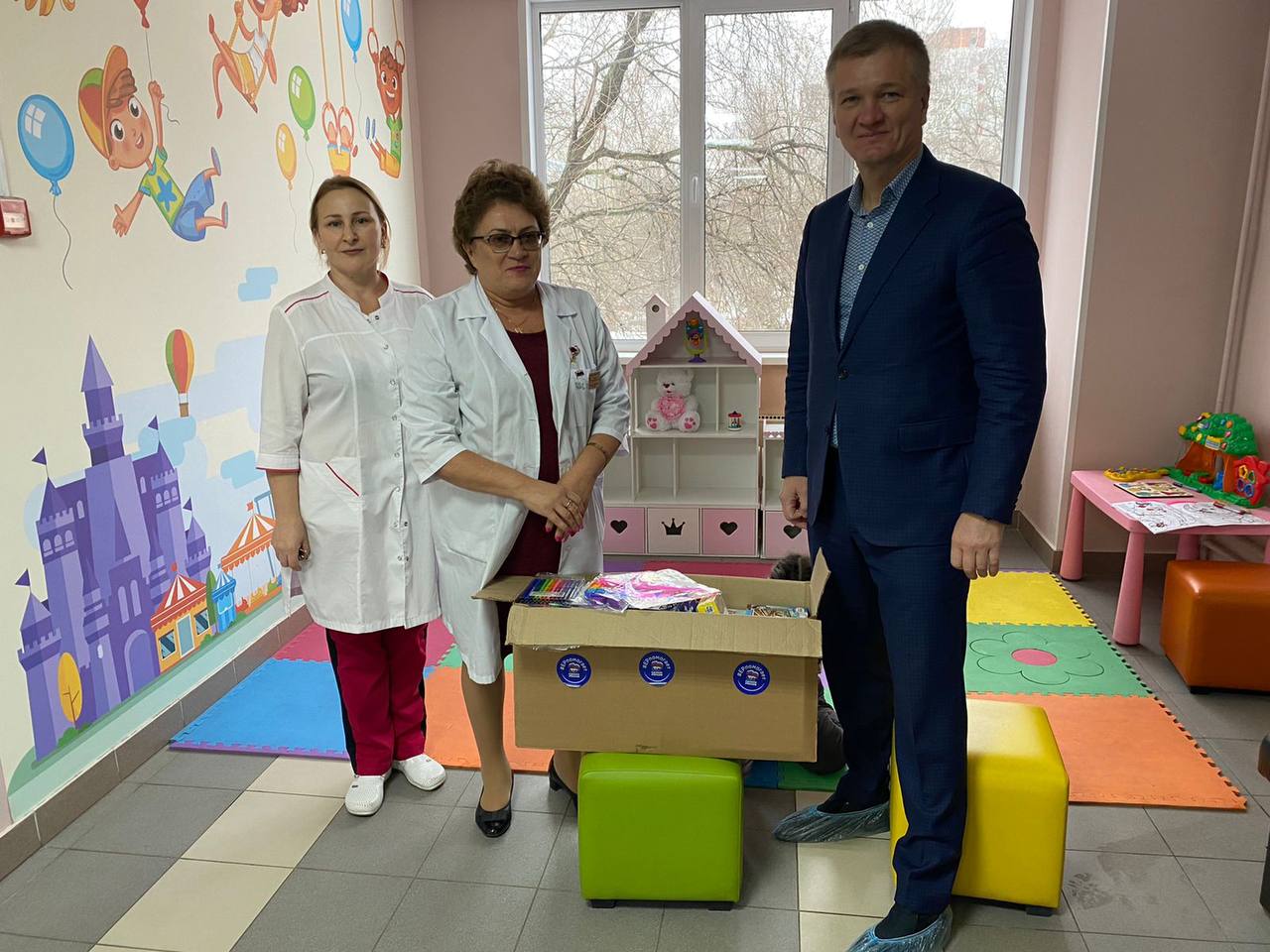 После вручения подарков партийцы пообщались с родителями пациентов, с медперсоналом, а также приняли пожелания о дальнейшем развитии проекта «Добрая комната».