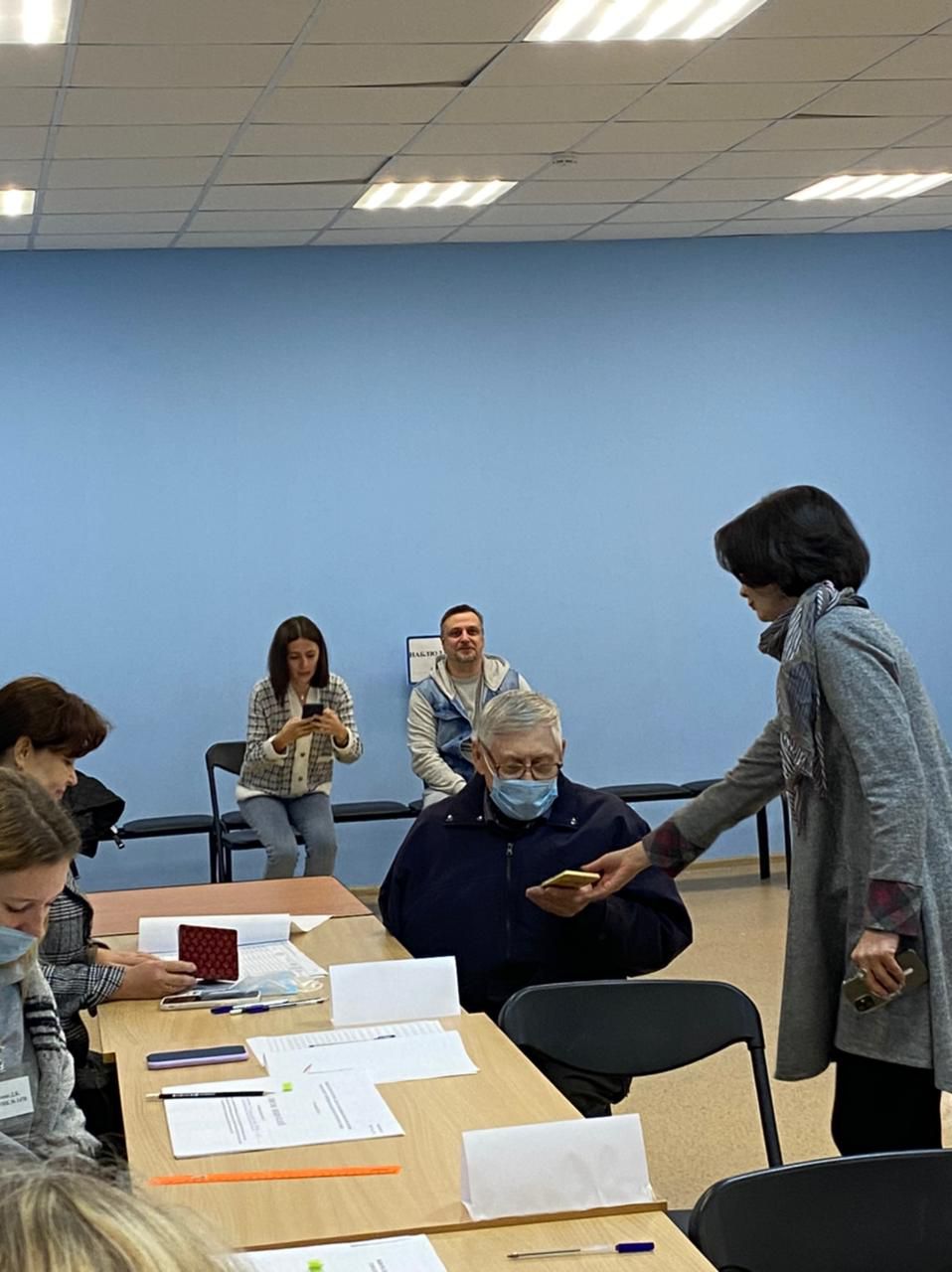 Первым избирателем на участке номер 1470 в Доме офицеров стал пенсионер, в прошлом учитель. Он рассказал, что всегда голосовать приходит первым к 8 утра. Это стало доброй традицией. В избирательной комиссии активному жителю подарили шоколадку.