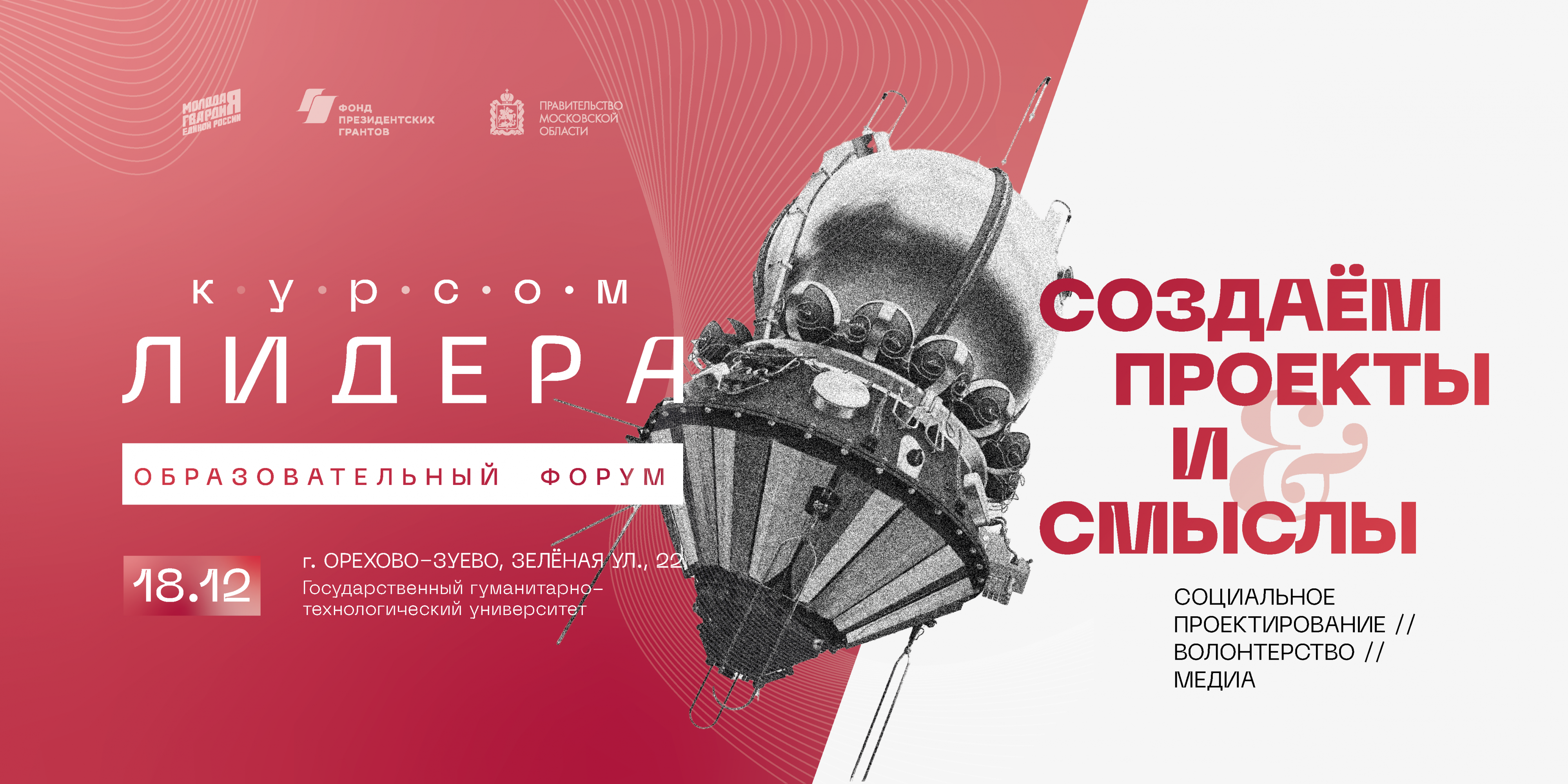 «Курсом лидера» представляет образовательную платформу для самореализации, обмена опытом и мотивации волонтёров. На форумах молодёжь обсудит развитие добровольческого движения, поучаствует в мастер-классах и тренингах. Для участников форумов выступят лидеры общественного мнения, блогеры, журналисты, специалисты в области PR-технологий и event-технологий.