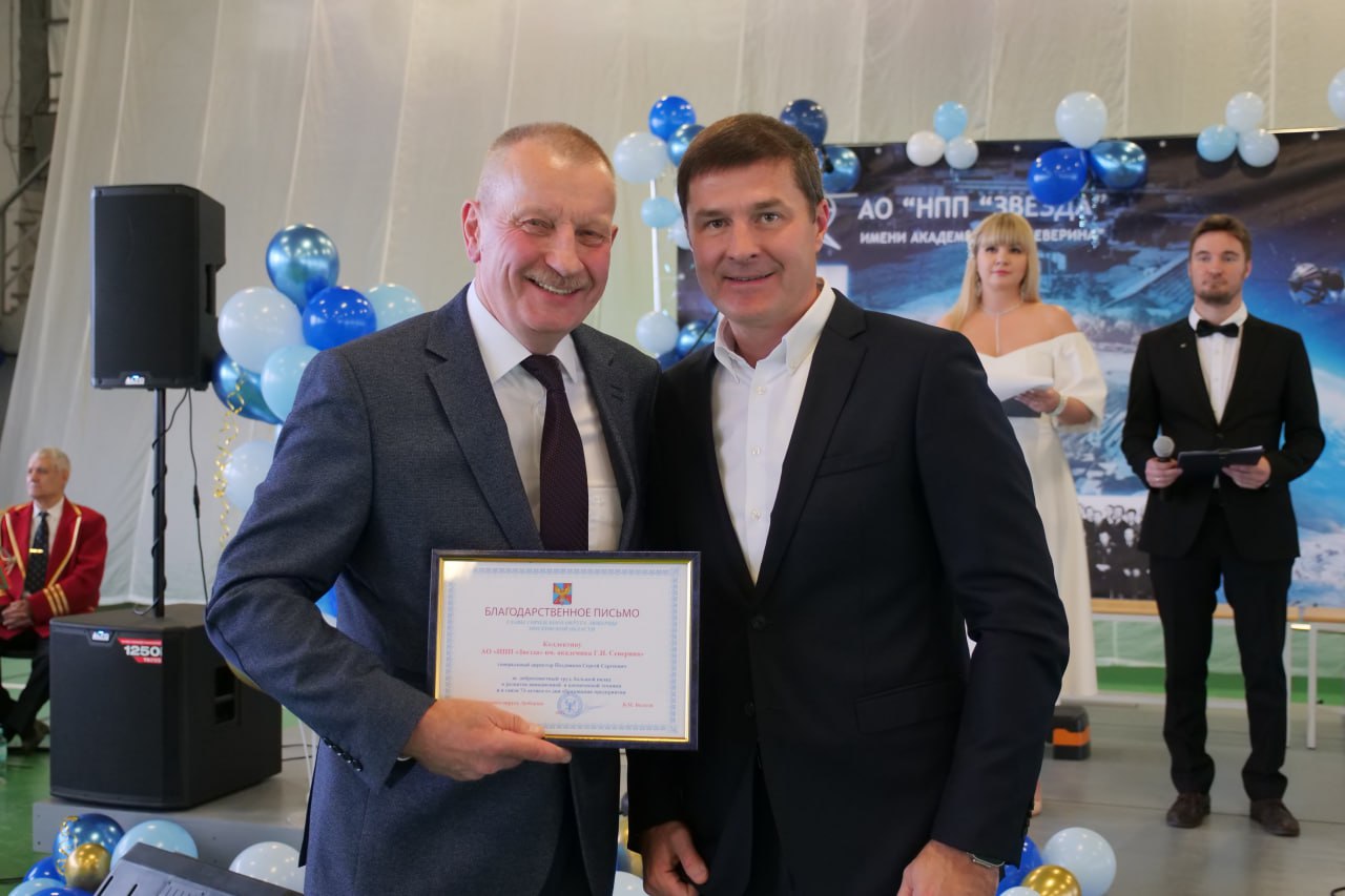 «Разработанные на люберецком предприятии системы жизнеобеспечения, спасения и дозаправки в полете стали настоящим прорывом, обеспечивающим безопасность пилотов и космонавтов по всему миру. Особая гордость: в коллективе «Звезды» работают более 900 люберчан — талантливых инженеров, конструкторов и рабочих, чей труд служит примером профессионализма и преданности Родине. В лице генерального директора-главного конструктора Сергея Сергеевича Позднякова желаю всему коллективу крепкого здоровья, благополучия и новых успехов в укреплении обороноспособности и технологической мощи России!» - отметил Владимир Волков.