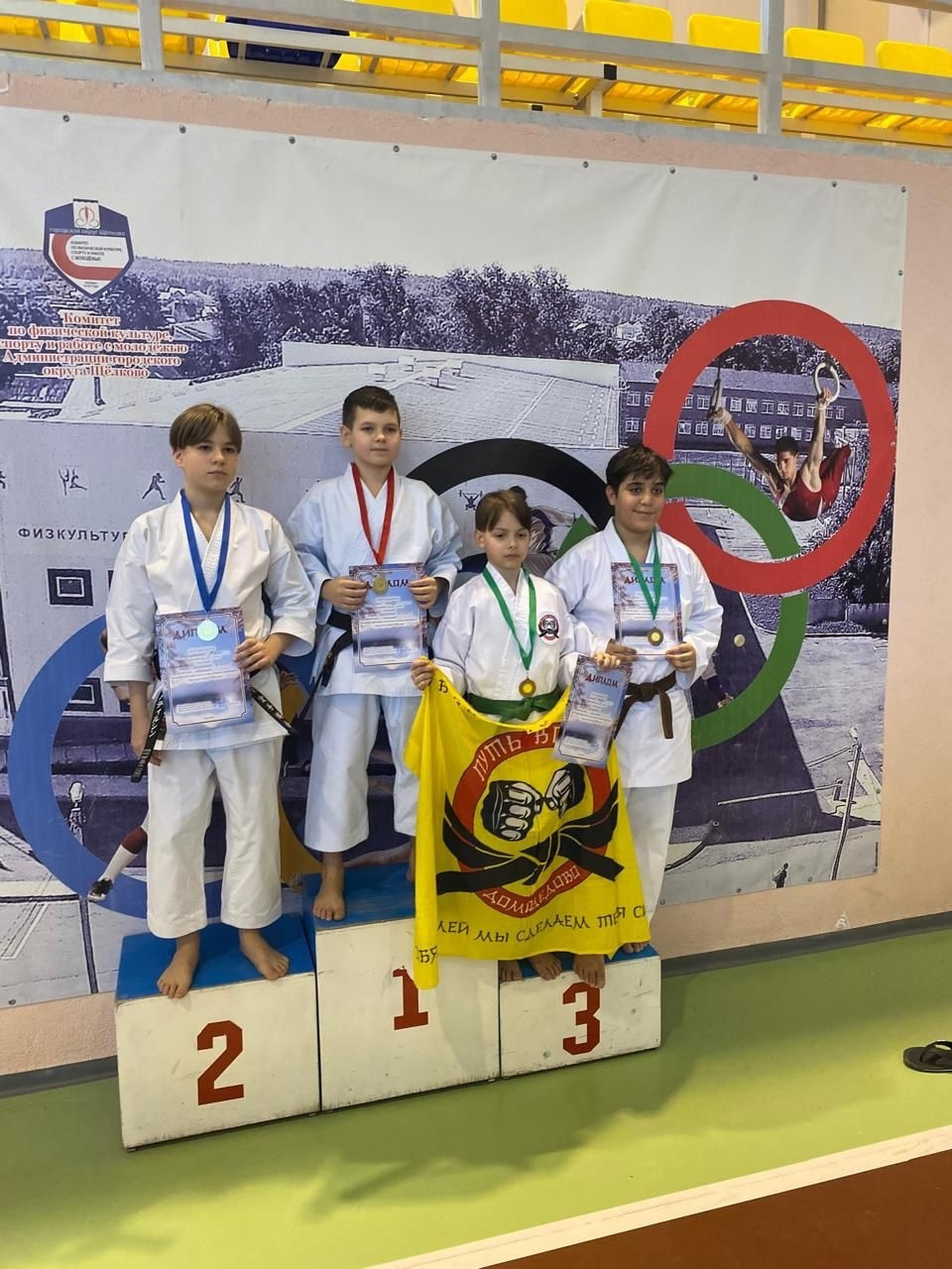 На первую ступень пьедестала поднялись: Виктория Жукова, Иван Дроздов, Давид и Кира Жуковы. Бронзовую медаль завоевала Мария Костромина.