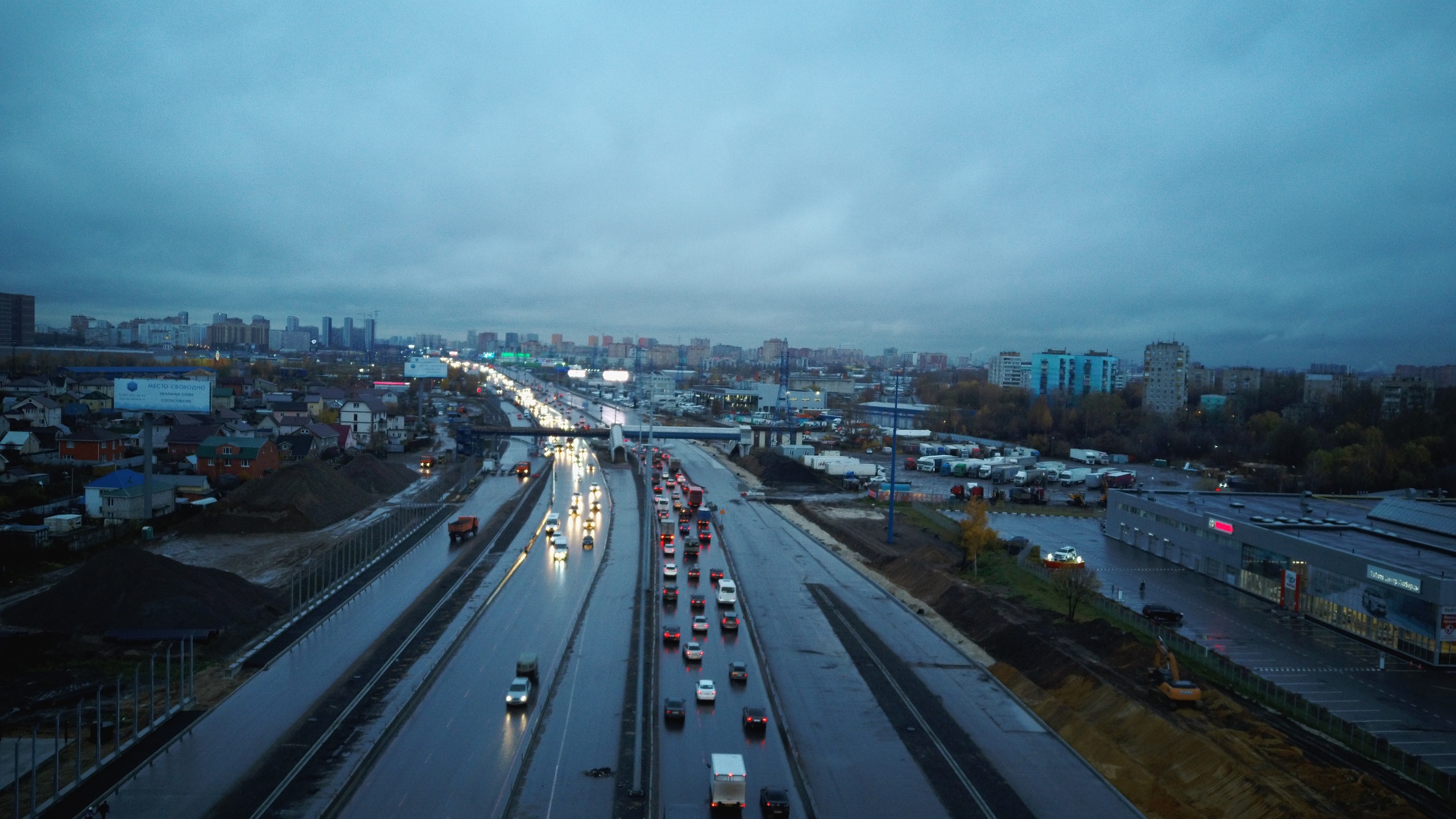 Ведутся работы по строительству земляного полотна и дорожной одежды на площади 35 000 квадратных метров, по строительству пяти подземных пешеходных переходов, по переустройству линий ВЛ – 110 кВ и линий газораспределения, по строительству шумозащитных экранов, по монтажу шумозащитных стеклопакетов, по строительству очистных сооружений.