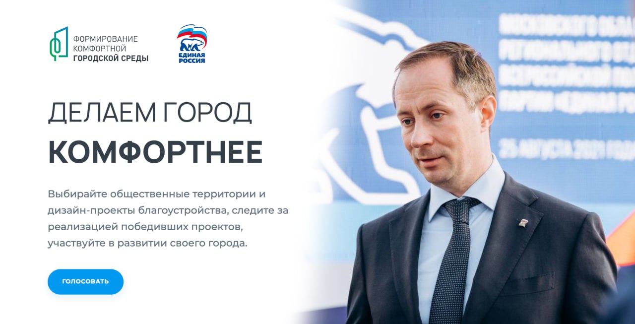 Голосование за объекты, которые будут благоустроены по программе «Формирование комфортной городской среды», организованной Минстроем и «Единой Россией», проходит на сайте 50.gorodsreda.ru.