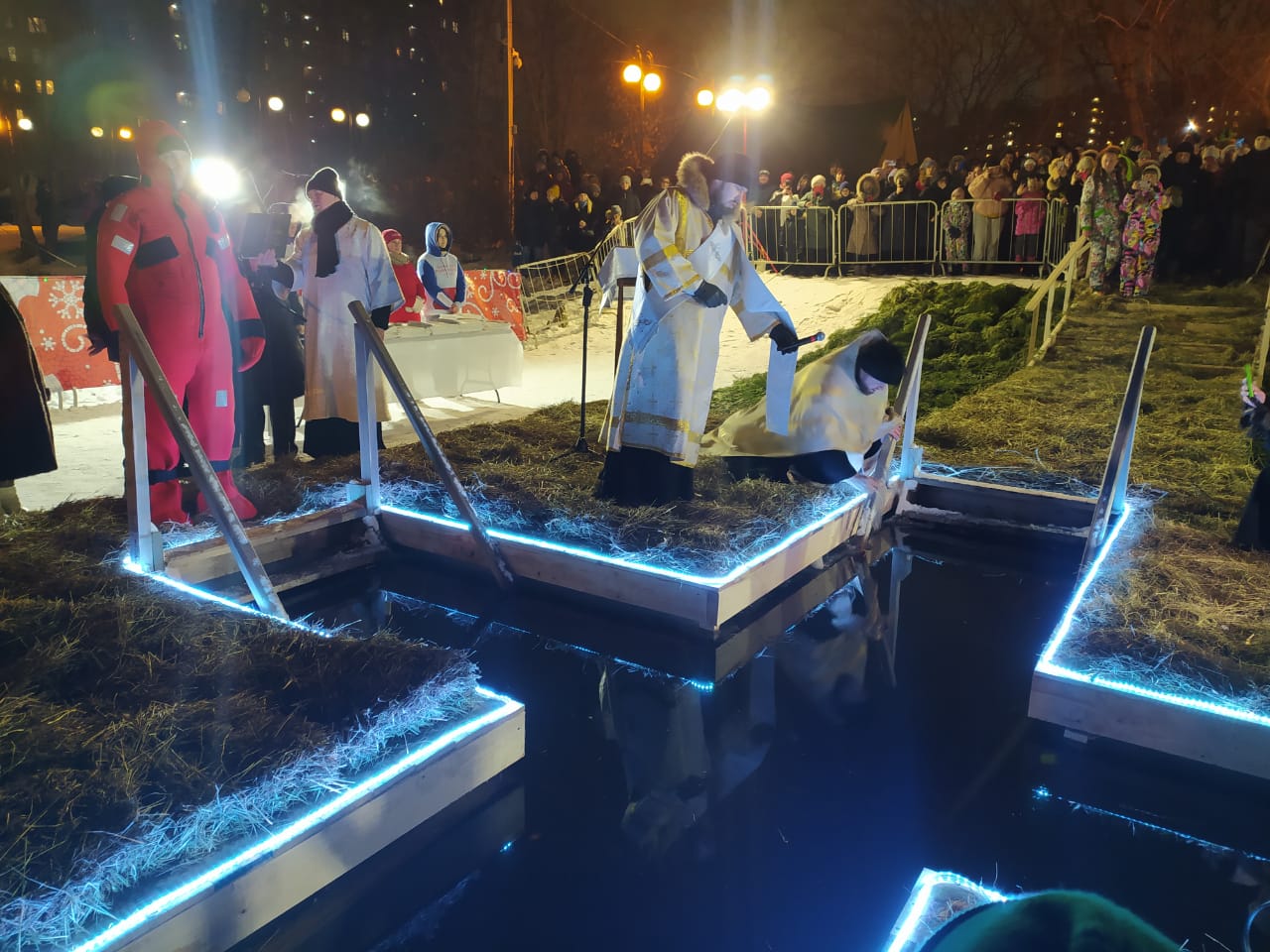 «Наши работники противопожарно-спасательной службы совместно с представителями администраций городских округов, казачества, волонтеров, полиции заранее готовили эти места. Установлены ограждения, деревянные сходни в воду. Спасатели установили стойки освещения и развернули палатки с обогревом, где все желающие могли переодеться в сухую одежду. У мест купания постоянно дежурили спасатели и пожарные, которые помогали купающимся выходить из воды. После купания можно было попить горячего чая. Это большая совместная работа, которая позволила обеспечить безопасность данного мероприятия», - отметил Дружинин.