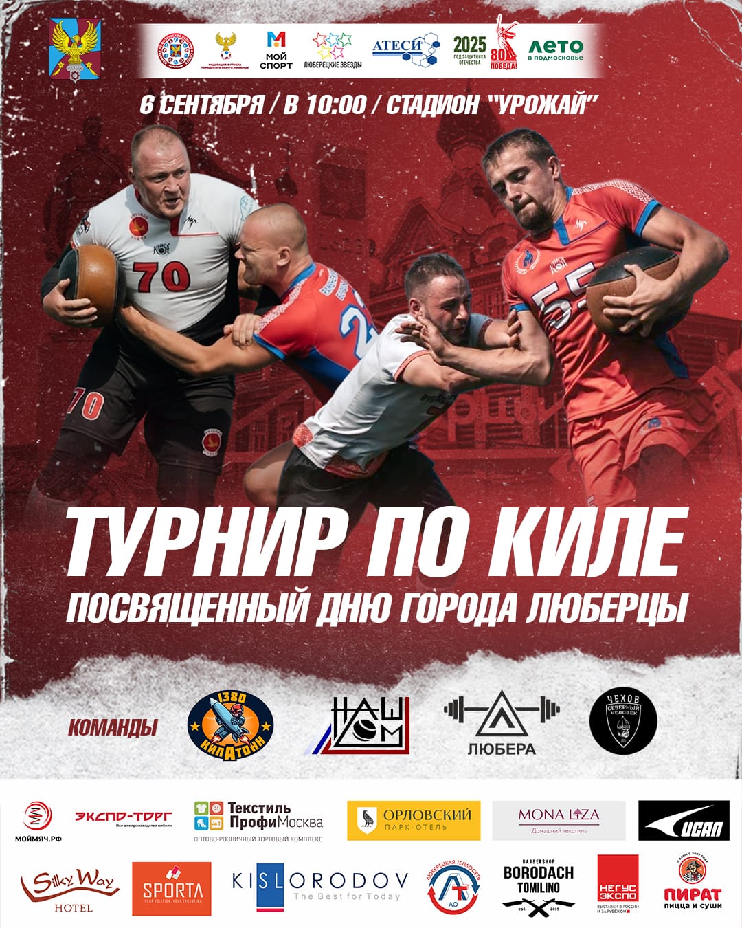 В День города жители и гости Люберец смогут понаблюдать за противостоянием победителей и призёров соревнований различного уровня: команд «Любера» (г. Люберцы), «1380 килАтонн» (г. Дзержинский), «Северный человек» (г. Чехов) и «Наш дом» (г. Раменское).