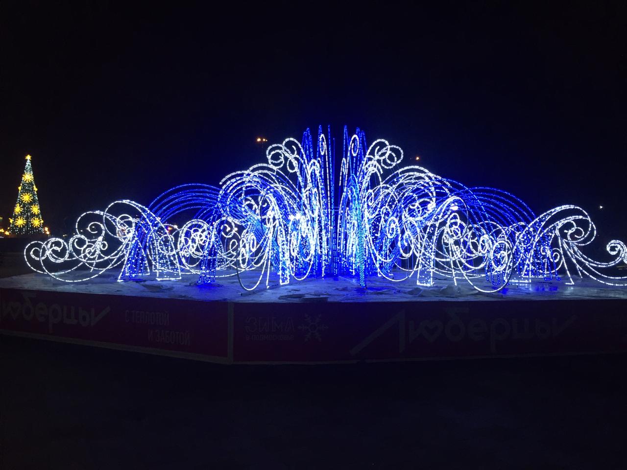 Минувшей ночью в Центральном парке культуры и отдыха Люберец был установлен новогодний светодиодный фонтан диаметром 17 метров и высотой более четырех метров. Об этом сообщил глава муниципалитета Владимир Ружицкий.