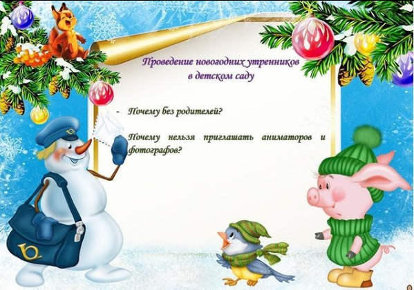 Вместе с тем сообщается, что на утренниках дети не останутся без традиционных новогодних персонажей - Деда Мороза и Снегурочки. Образовательные учреждения располагают достаточными ресурсами - кадровыми, техническими, организационными и методическими - для самостоятельного проведения таких мероприятий.