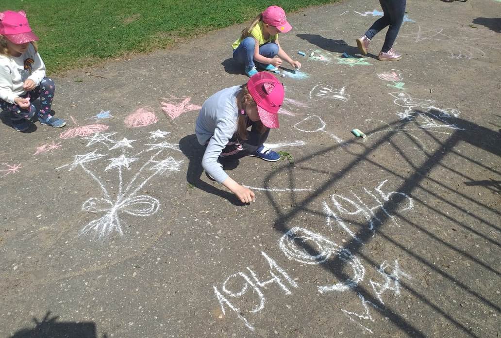 Прямо на асфальте, как на импровизированной сцене, выступают юные танцоры Люберецкой детской хореографической школы. Каждый танец вызывает шквал аплодисментов. Со сцены звучат песни военных лет.