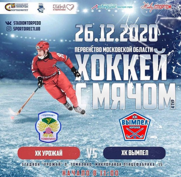 «26 декабря на лёд выйдут команды «Урожай» из пос. Томилино городского округа Люберцы и «Вымпел» из г. Королёв. Игра состоится на стадионе «Урожай» в 11:00 в рамках первенства Московской области», - пояснил Сурков.