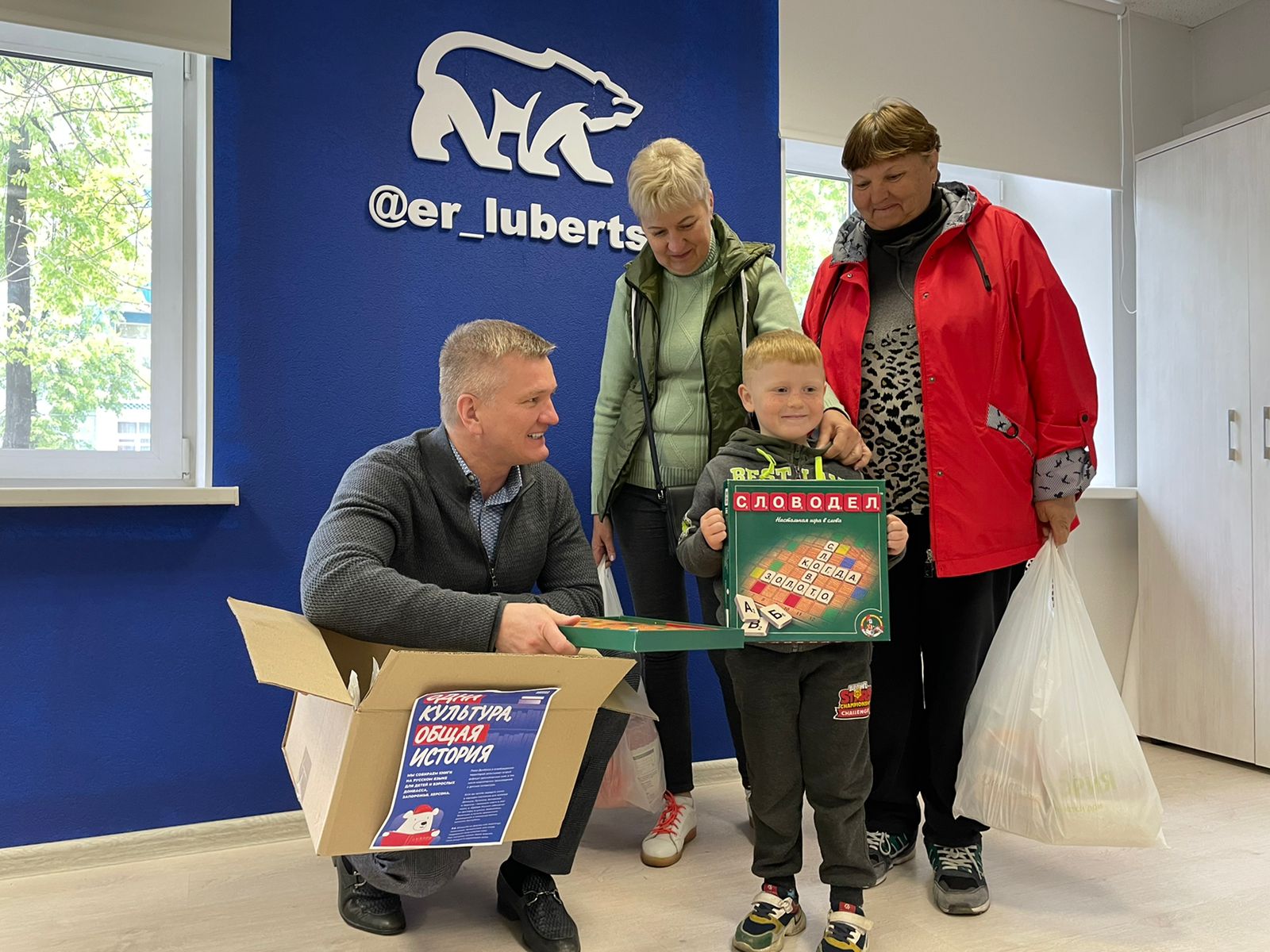 Семья приехала из Северодонецка Луганской Народной Республики. В Люберцах беженцы обратились в местное отделение партии, где им была оказана помощь консультативного характера, поддержка продуктовыми наборами, вещами первой необходимости. Теперь на новом месте жительства у семьи появилась своя домашняя библиотека.