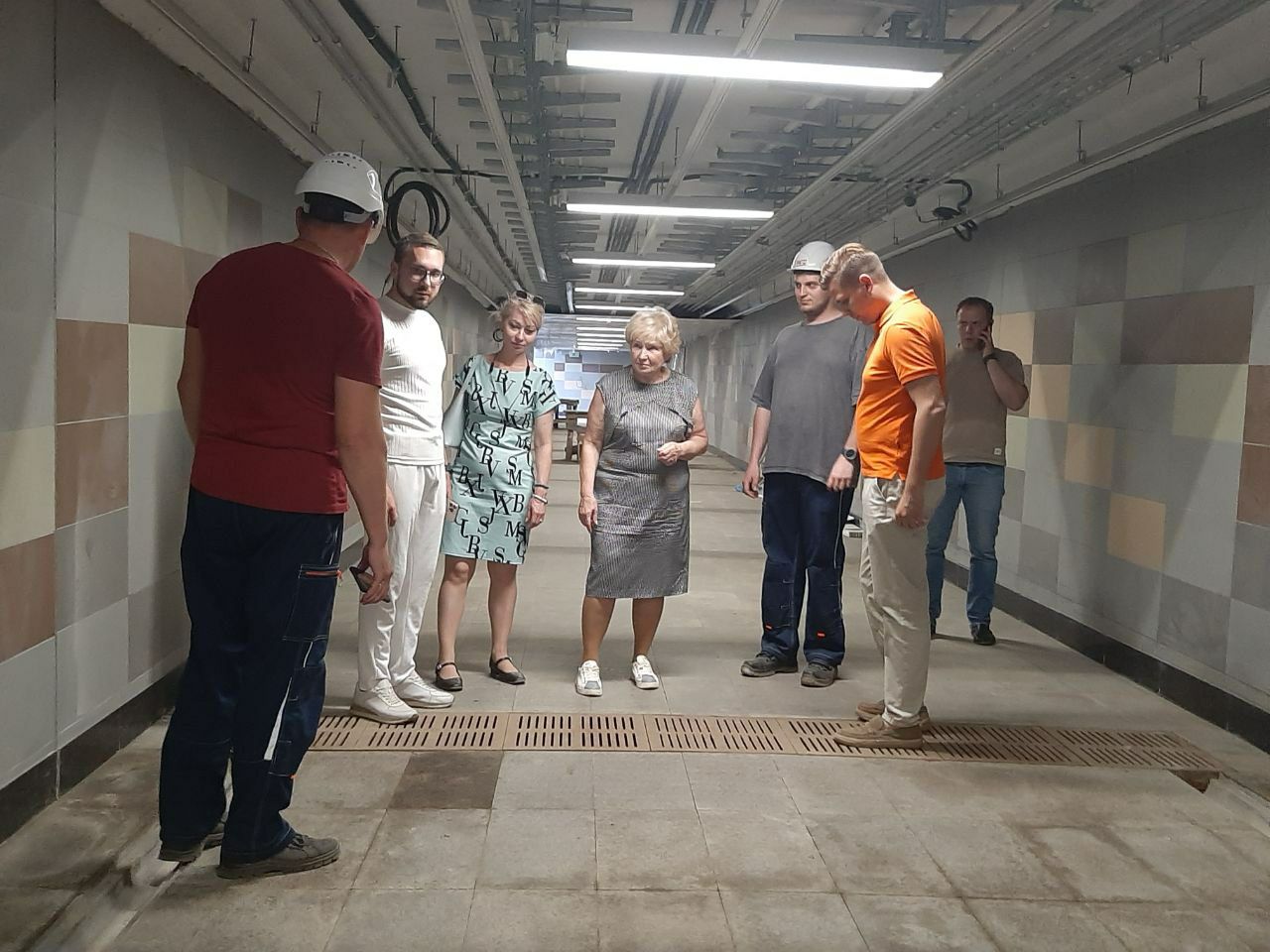 Ход строительства современного подземного пешеходного перехода на пересечении Октябрьского проспекта и улицы Красная в Люберцах проверили депутат Московской областной думы Лидия Антонова, начальник управления дорожного хозяйства и развития дорожной инфраструктуры администрации муниципалитета Иван Игнатов, представители подрядной организации, председатель Совета депутатов Люберец Пётр Ульянов и муниципальный депутат фракции «Единая Россия» Евгения Ерченкова.