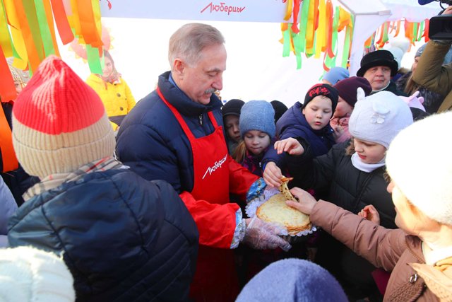 Сегодня в Люберцах и во всех посёлках округа проходят праздничные гулянья, посвящённые проводам Масленицы. Глава муниципалитета Владимир Ружицкий, люберчане и гости округа окунулись в атмосферу старорусских гуляний, ярмарок, пекли и угощались блинами.