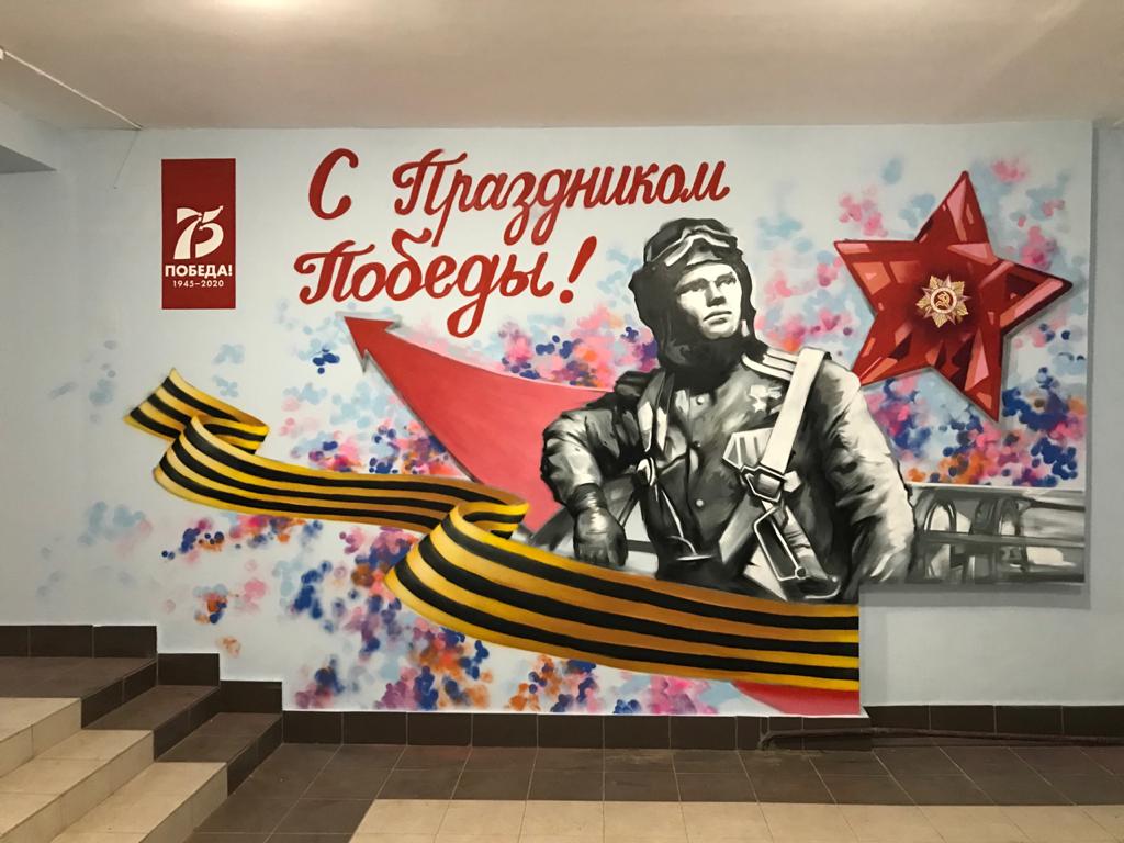В честь празднования 75-й годовщины Победы в Великой Отечественной войне сотрудники управляющей компании «Содействие» решили сделать художественное оформление в одном из подъездов, находящихся в обслуживании их компании.