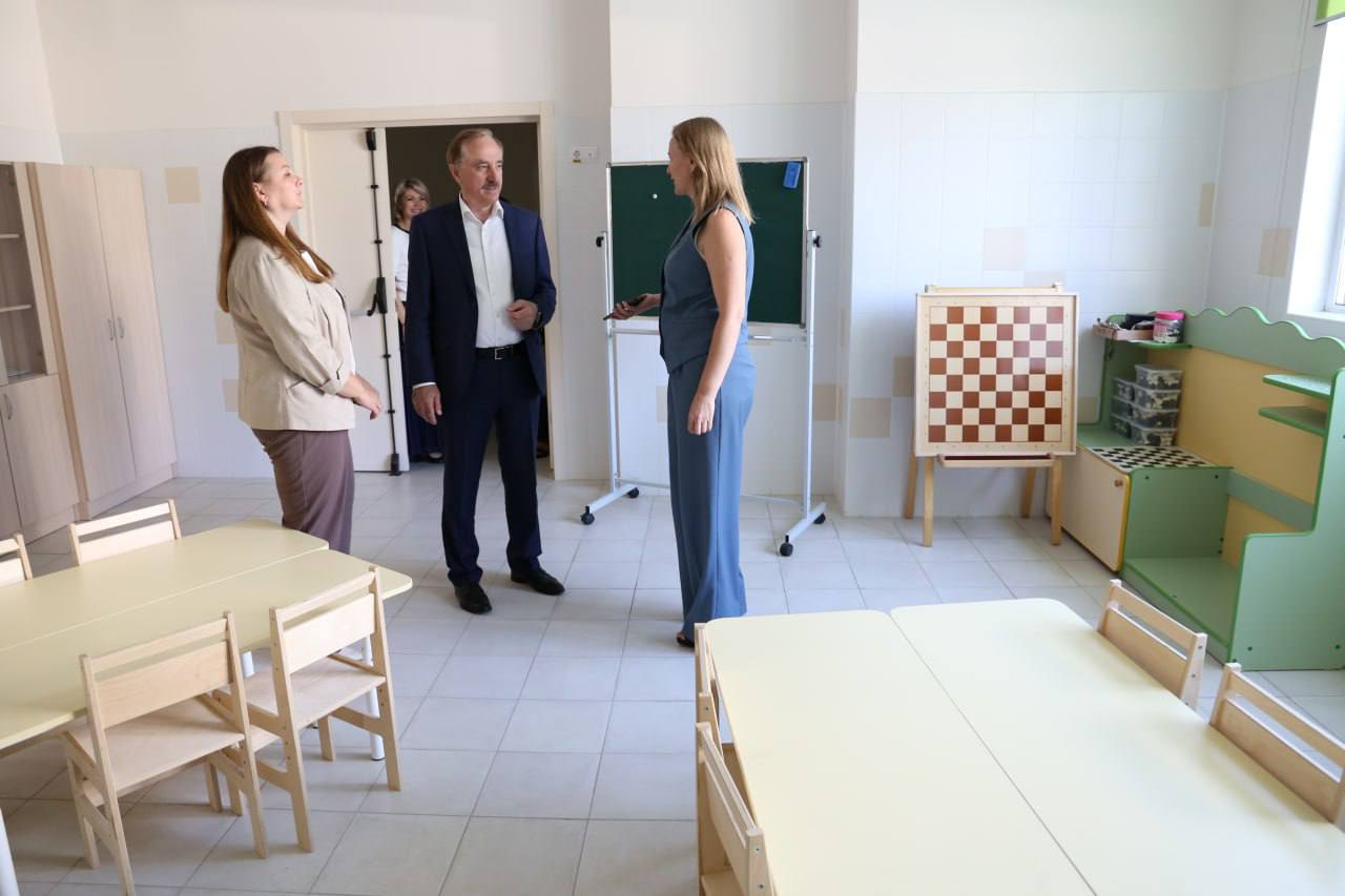 «В рамках партийного проекта «Единой России» «Новая школа» оценил его работу. Дети распределены по 7-ми группам, одна из них - ясельная. В учебном заведении есть медицинский блок, музыкальный и физкультурный залы, пищеблок, кабинеты профильных специалистов - логопеда и психолога. На территории оборудованы современные уличные площадки, где ребятам комфортно проводить время на прогулках. С руководством учреждения обсудил хозяйственные вопросы и подбор кадров. Поиск воспитателей начали еще во время строительства, трудностей в комплектовании штата не возникло», - отметил Ружицкий.
