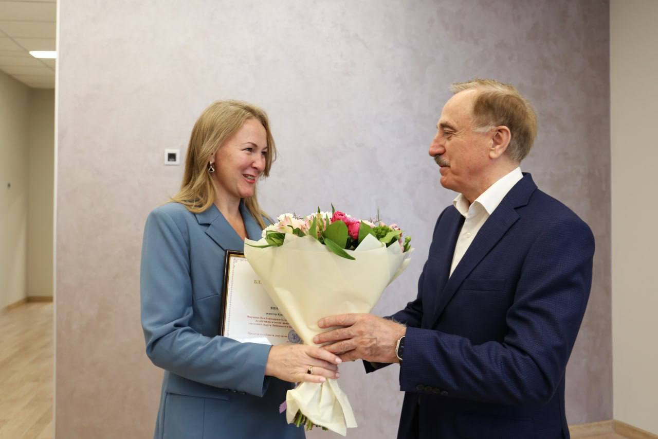Председатель Совета депутатов городского округа Люберцы Владимир Ружицкий в преддверии Дня учителя поздравил коллектив школы «Созвездие» во главе с ее директором Оксаной Краминой, вручил награды Совета депутатов.