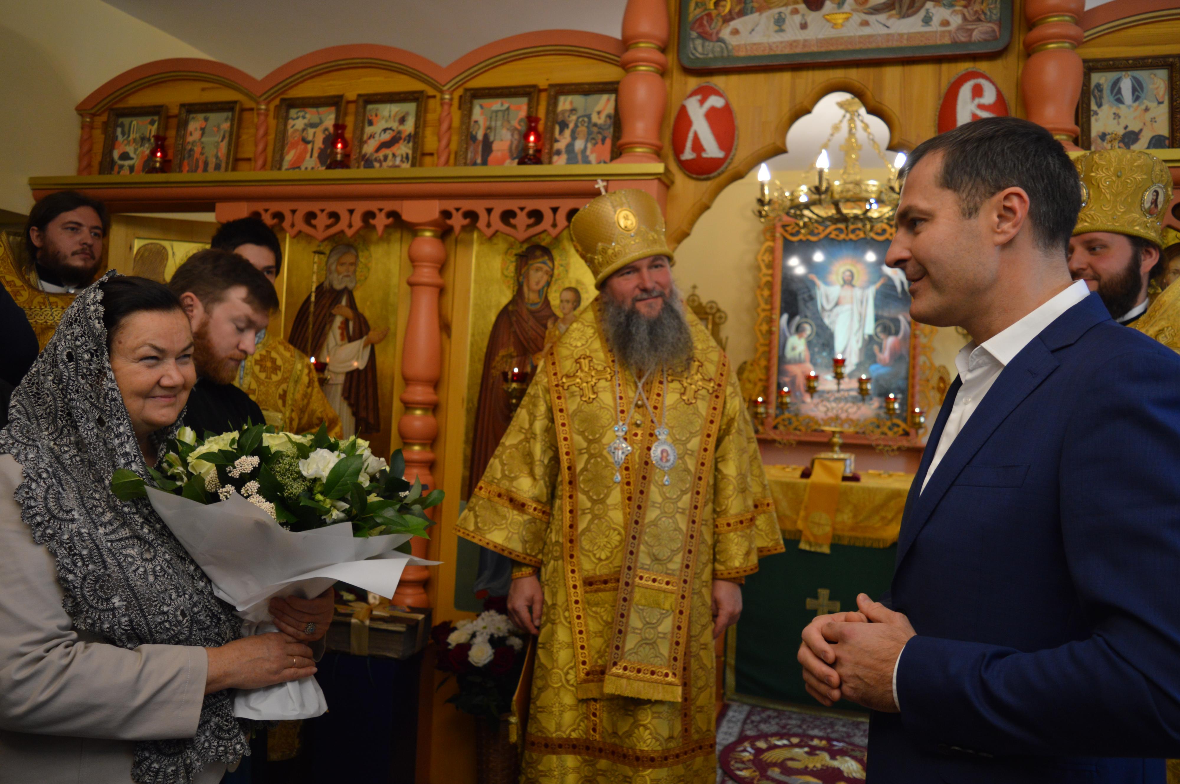 Временно исполняющий полномочия главы городского округа Люберцы Владимир Волков поздравил директора школы «Образ» Татьяну Смирнову, весь педагогический коллектив, духовника - священника Анатолия Жидкова, учеников и выпускников православной школы «Образ» с 30-летием.