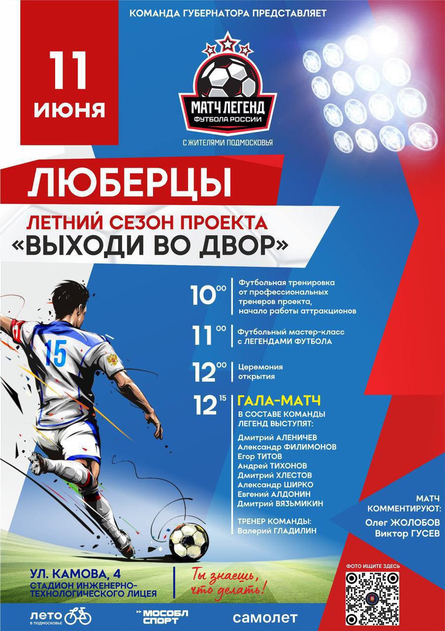 Глава городского округа Люберцы Владимир Волков пригласил 11 июня всех желающих на второй матч летнего сезона подмосковного проекта «Выходи во двор» со звездами российского и мирового футбола.