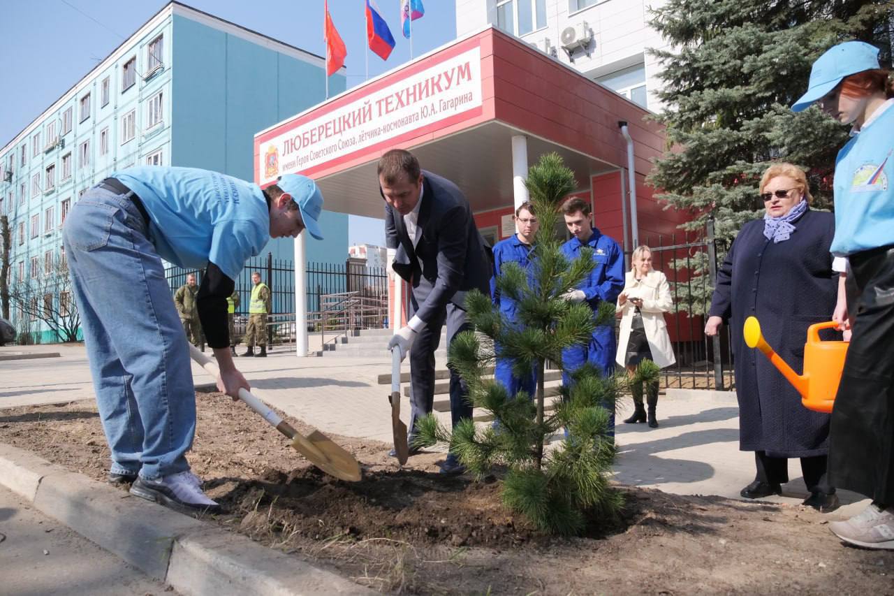 «История нашего округа неразрывно связана с именем первого космонавта. В 1949 году 15-летний Юра Гагарин поступил в Люберецкое ремесленное училище № 10. Через два года окончил его с отличием по специальности формовщик-литейщик. Сейчас техникум с гордостью носит имя первого космонавта. Сегодня вместе с директором - Ольгой Клубничкиной и студентами рядом со зданием техникума посадили кедр. Любопытный факт - именно это дерево было одним из любимых у Юрия Алексеевича и свой позывной – «Кедр» - он выбрал себе сам», - отметил Волков.